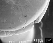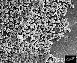 Bacteria on a pin head. (Left) X100 (Right)