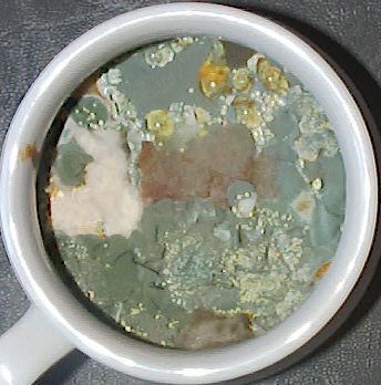 (Right) Mold on chopped tomatoes. (life size)
