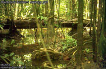 © Marco Bleeker, 1995-1998 On Earth, water occurs in three physical states: solid (ice), liquid, and gas (vapor). Its most common state is liquid as oceans, rivers, lakes and ponds. It is also present in much smaller quantities in organisms and soil. The water cycle operates within a rigorous balance, but is related to many factors associated with climate, vegetation cover, wind conditions, and the geographical location of large bodies of water such as rivers and lakes. Water is an essential component of metabolic activities and acts as a primary transportation medium for both organic and inorganic substances. In plants it is fundamental to structural maintenance and in animals it is important to thermal regulation. Water vapor is found in the atmosphere and is created by evaporation, mainly from bodies of liquid water, but also from the soil and by plant transpiration; and to a minor extent through respiration, excretion and perspiration processes in animals. After the organism's death, water comes back to the environment through decomposers' action. The energy source for this is mainly solar radiation. Tree cover - such as the rainforest canopy - and vegetation (including seaweed) can play a major part in regulating rates of evaporation. Cloud cover is created by the evaporation process as a result of phase changes in the water, due to alterations in pressure and temperature. Plants absorb ground water through their roots and the consumers (ie animals) absorb it directly by drinking, or indirectly through the consumption of plants and other animals.