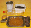 want to use some duct tape to join the two parts together. 12 The filtered water will be collected in the can. You can rig up a system for holding the filter above the can so the water pours freely out the bottom of the filter unit. 13 Dirty water is poured onto the sand. There should be room for a couple of cups of water in the top of the unit. 14 The filler needs to be cleaned of charcoal powder and other very fine material, so run some tap water though it for a while, until the output water looks as clean as the input water. 15 Once this is done the filter is ready for use. Dirty water can now be poured through the filter and it should come out a lot cleaner than it went in. It is not, however, clean enough to drink. How it works The sand acts as a primary filter. It takes out all the large and some small particles from the water. The