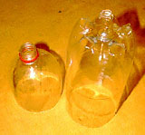 Fill the bottle with charcoal. 7 The top portion of the bottle forms a funnel when it is upside-down. 8