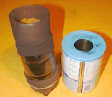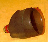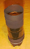 Cut holes in the dimples on the bottom. If using tights cut them into two stockings. 5 Fit a stocking over the end of the larger section of the bottle and secure with an elastic band. This stocking stops the small pieces of charcoal from being washed away. 6