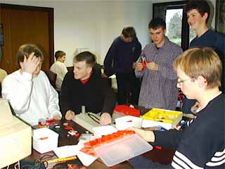 (Above) Students of Space School UK, Easter 1998 in Edinburgh, Scotland, make a robot arm and write control programs.