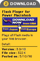 | First, click on the link for Macintosh PowerMacs. This will bring you to Macromedia's Flash download page. On that page, you'll see something similar to the illustration on the right ->