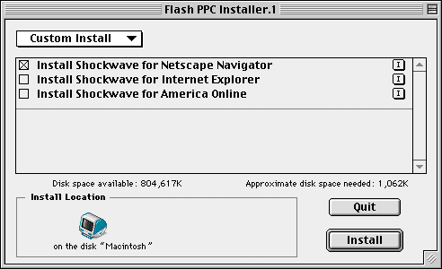 After accepting the licence agreement, a dialogue box like the one above appears. It is asking you which browser it should install the plugin into. In the example, we've chosen Netscape Navigator. Then click 'Install'.