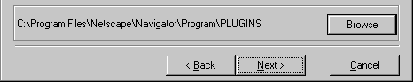 During the process, you'll be asked if the program is installing the plugin into the correct place. In the example above, we are installing into Netscape Navigator. The program usually does this automatically for you, but if it has made the wrong choice, click the 'Browse' button and find the web browser you want to use.