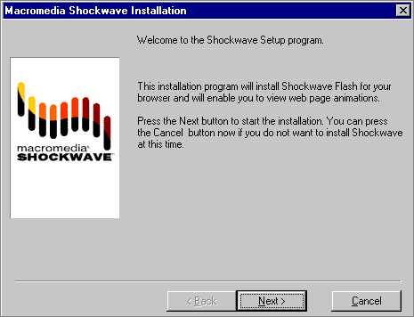 | First, click on the link for Windows PCs. This will bring you to Macromedia's Flash download page. On that page, you'll see something similar to the illustration on the right ->