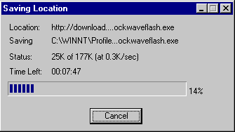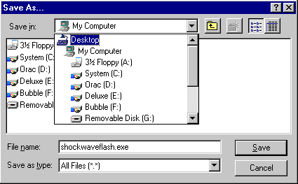The plugin will start to download. Netscape automatically saves downloaded files onto the desktop, however Internet Explorer users may have to specify where they wish to save to. It's a good idea to save the program onto your desktop, so that you know exactly where it is. |