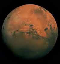 Both Earth and Mars orbit the Sun. They are planets, and accompany seven others which also go around the Sun. The Sun is a star, a large ball of hydrogen gas which is turning into helium gas by a process known as thermo-nuclear fusion, which causes the Sun to be very very hot.