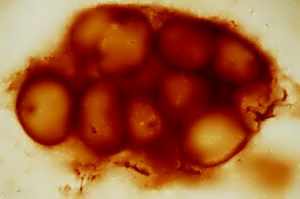 It is unlikely however that they will look anything like these (above), which are about full-size on the screen. The search will concentrate on looking for tiny fossils that are like Earth bacteria - micro-fossils (below). This particular one was found in Australia. The full story is on the University of California, Berkeley website.