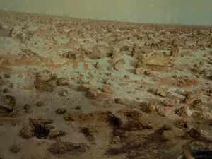 The Viking Mission suggested it was a butterscotch colour (see the picture further up the page), but the Pathfinder has shown it to be bluish, like Earth. However, the dust produces beautiful pinks and purples at sunset and sunrise. There are also wispy clouds, traces of which can be seen in the pictures below, which were taken by the Pathfinder Mission.